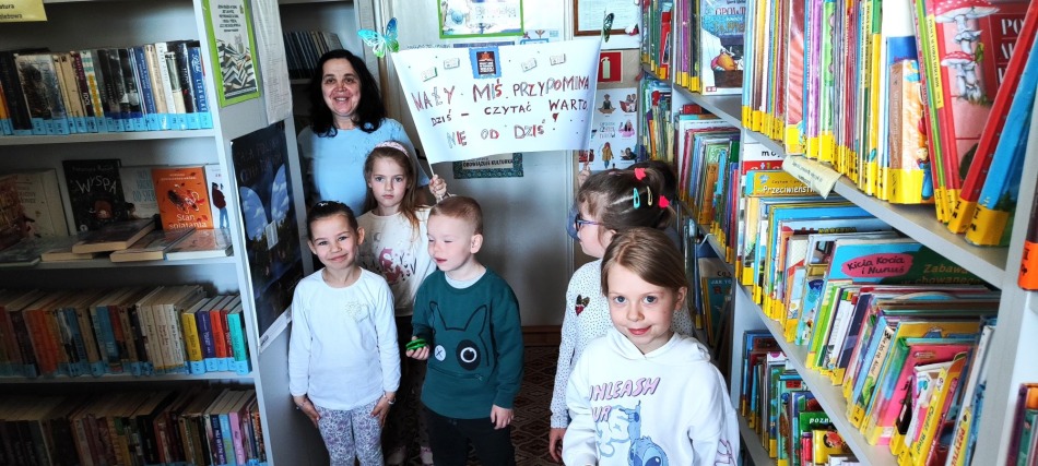 Miłym akcentem świętowania Dnia Książki były także odwiedziny w GBP w Jastrzębiu przedszkolaków z przygotowanym transparentem przypominającym, że warto czytać!